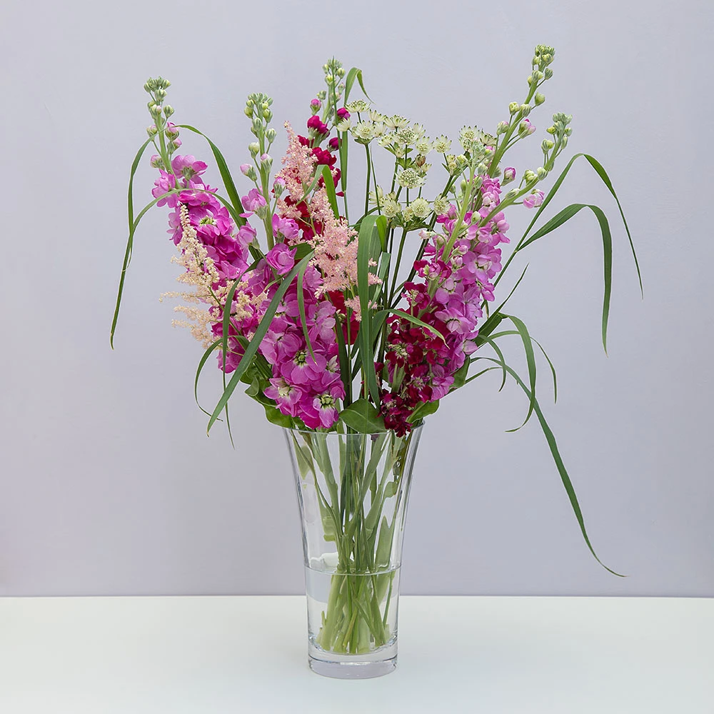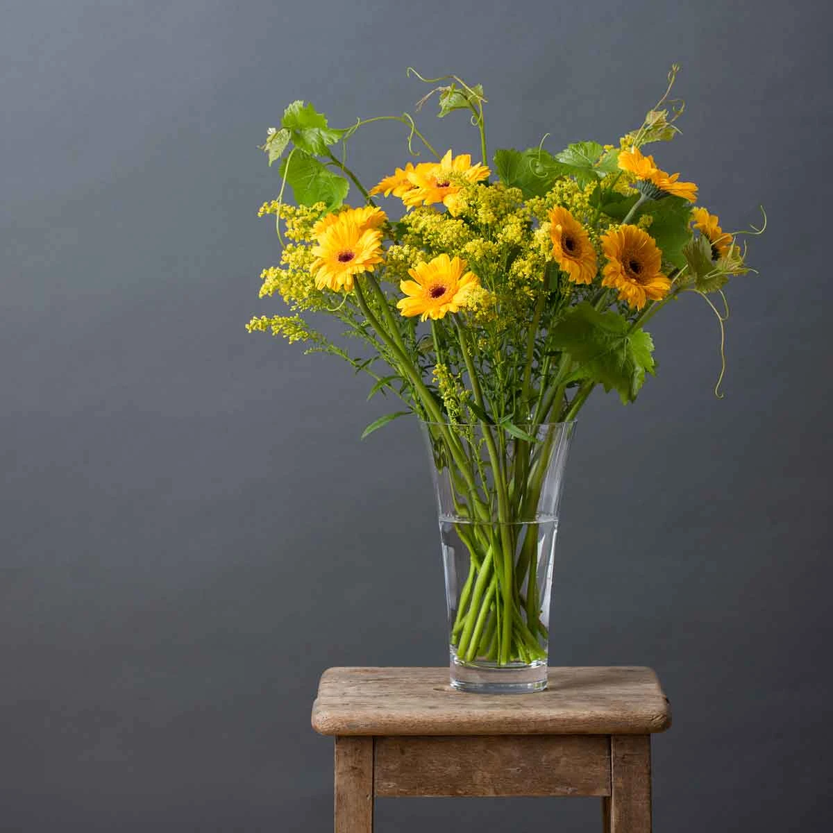 The narrow body and flared top of this vase holds the stems perfectly to display the blooms of any bouquet to their best effect.