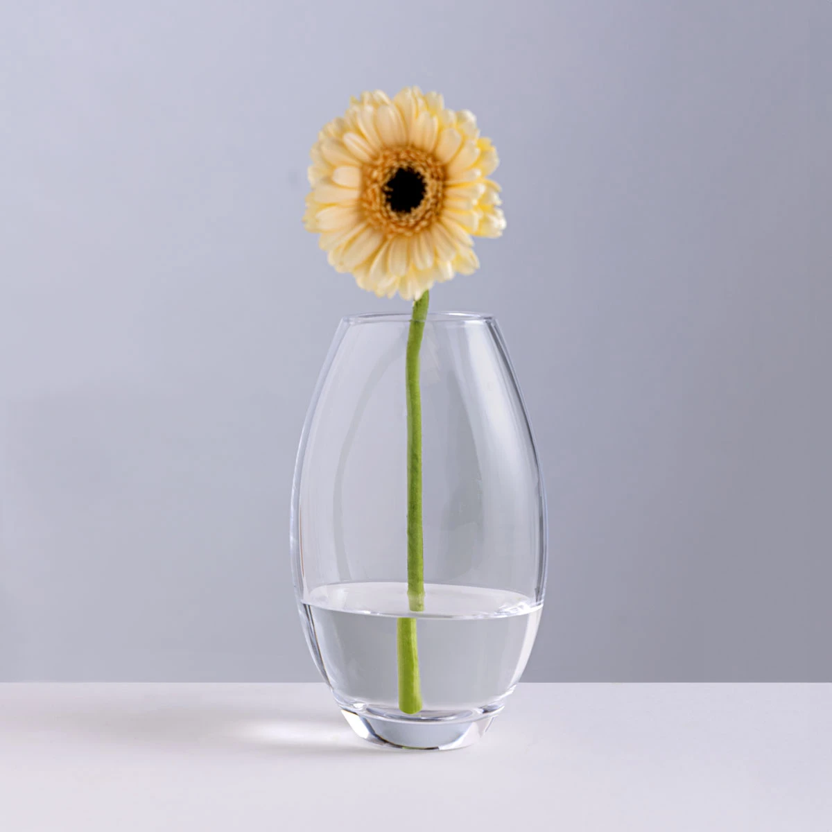 The sleek design of this small crystal vase allows short-stemmed flower displays to look their best every time.