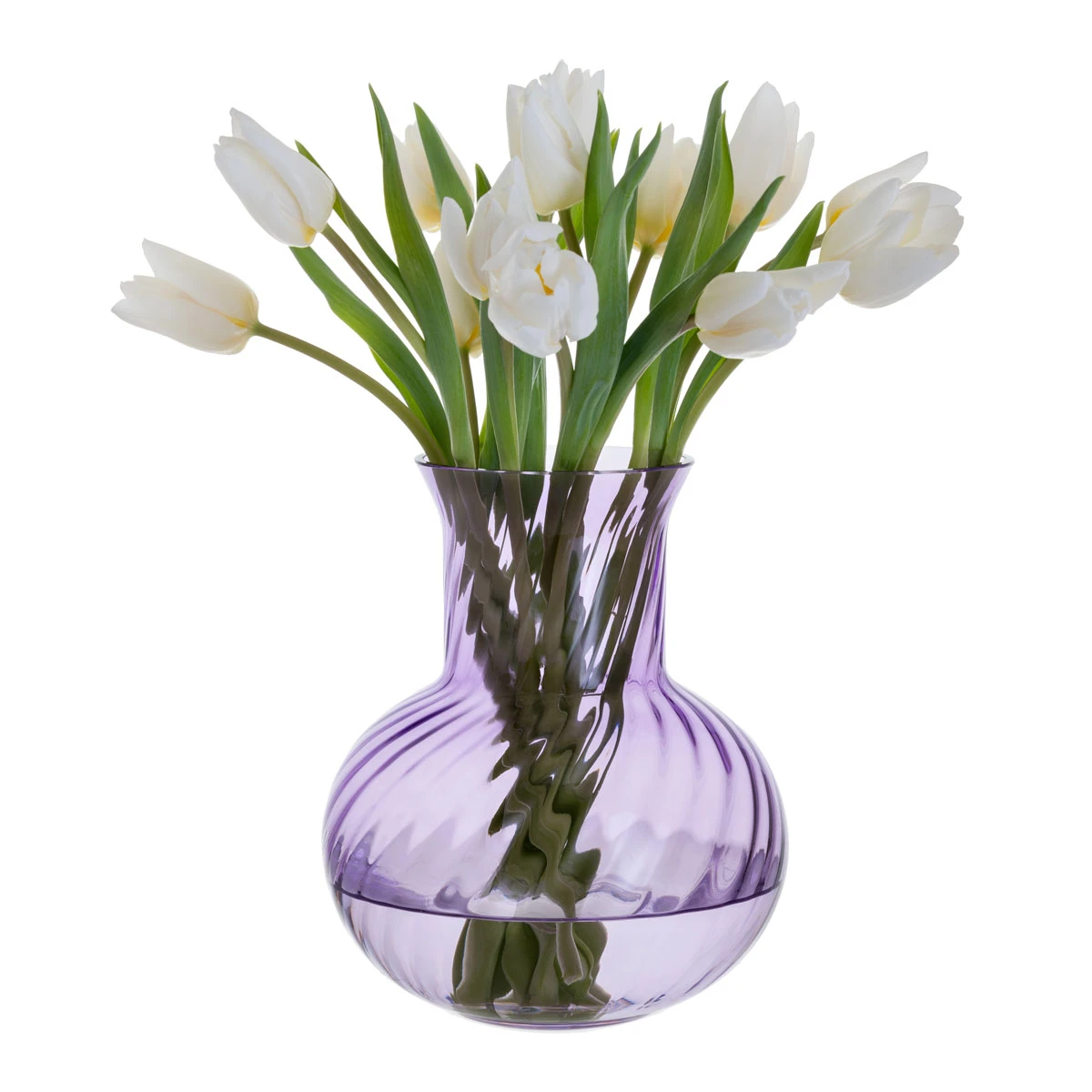The Smith vase features a mesmerising twisted optic that dances with light, creating a stunning visual effect. Its generous size makes it perfect for grand floral displays or as a striking standalone piece.